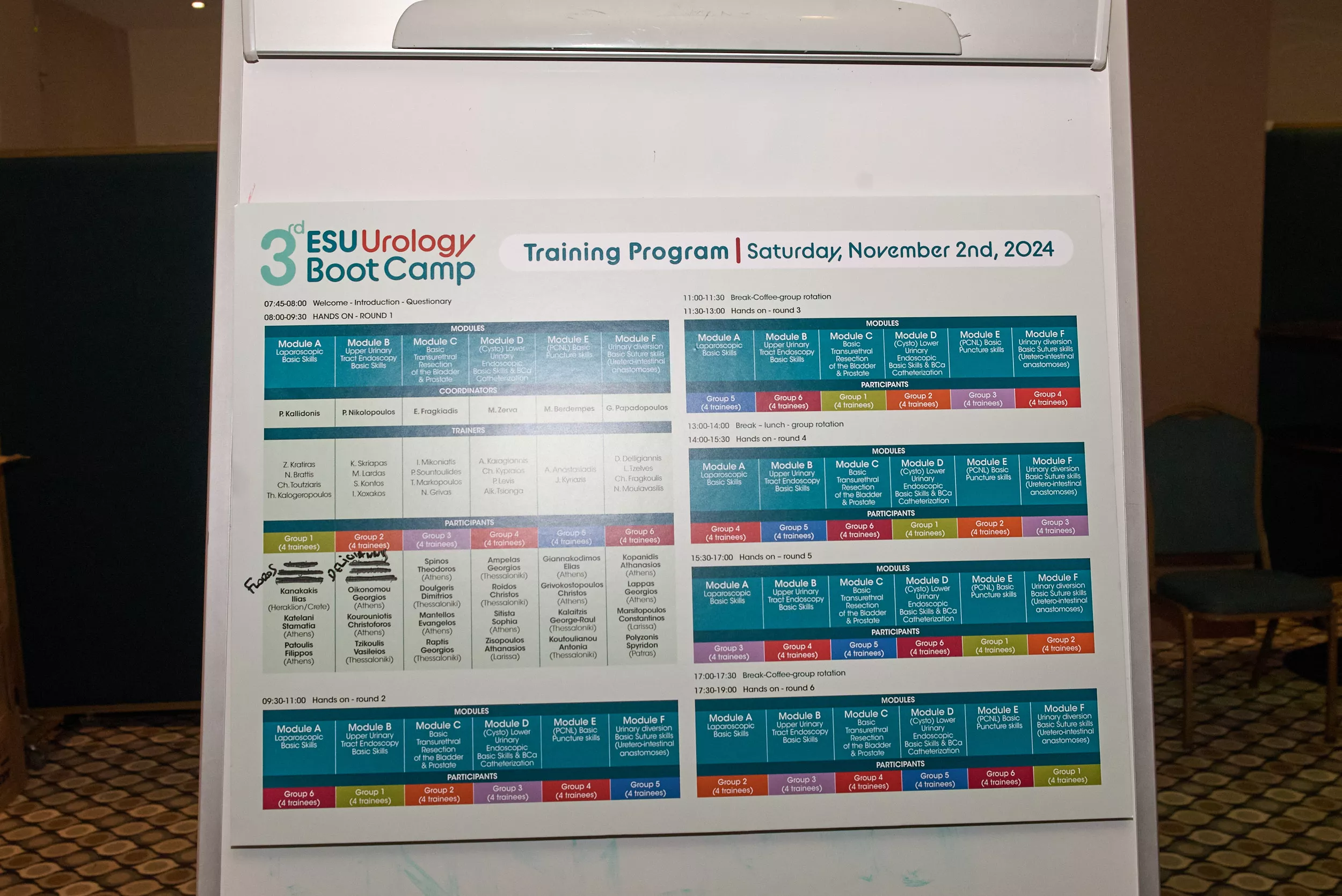 Με συνολικά 24 σταθμούς, όπου σε κάθε σταθμό / εκπαιδευτή, αντιστοιχούσε ανά δίωρο ένας εκπαιδευόμενος. Το εντατικό πρόγραμμα με συνολικά οκτώ (8) ώρες αποκλειστικής πρακτικής άσκησης, επικεντρώθηκε στην εξάσκηση πάνω σε βασικές ενδοσκοπικές τεχνικές και απλές ουρολογικές επεμβάσεις. Οι εκπαιδευόμενοι είχαν την ευκαιρία να αναπτύξουν επάρκεια ουρολογικών δεξιοτήτων και να κατανοήσουν βασικά θεωρητικά και πρακτικά θέματα, που είναι υψίστης σημασίας στην καθημερινή πρακτική ενός σύγχρονου Ουρολόγου.