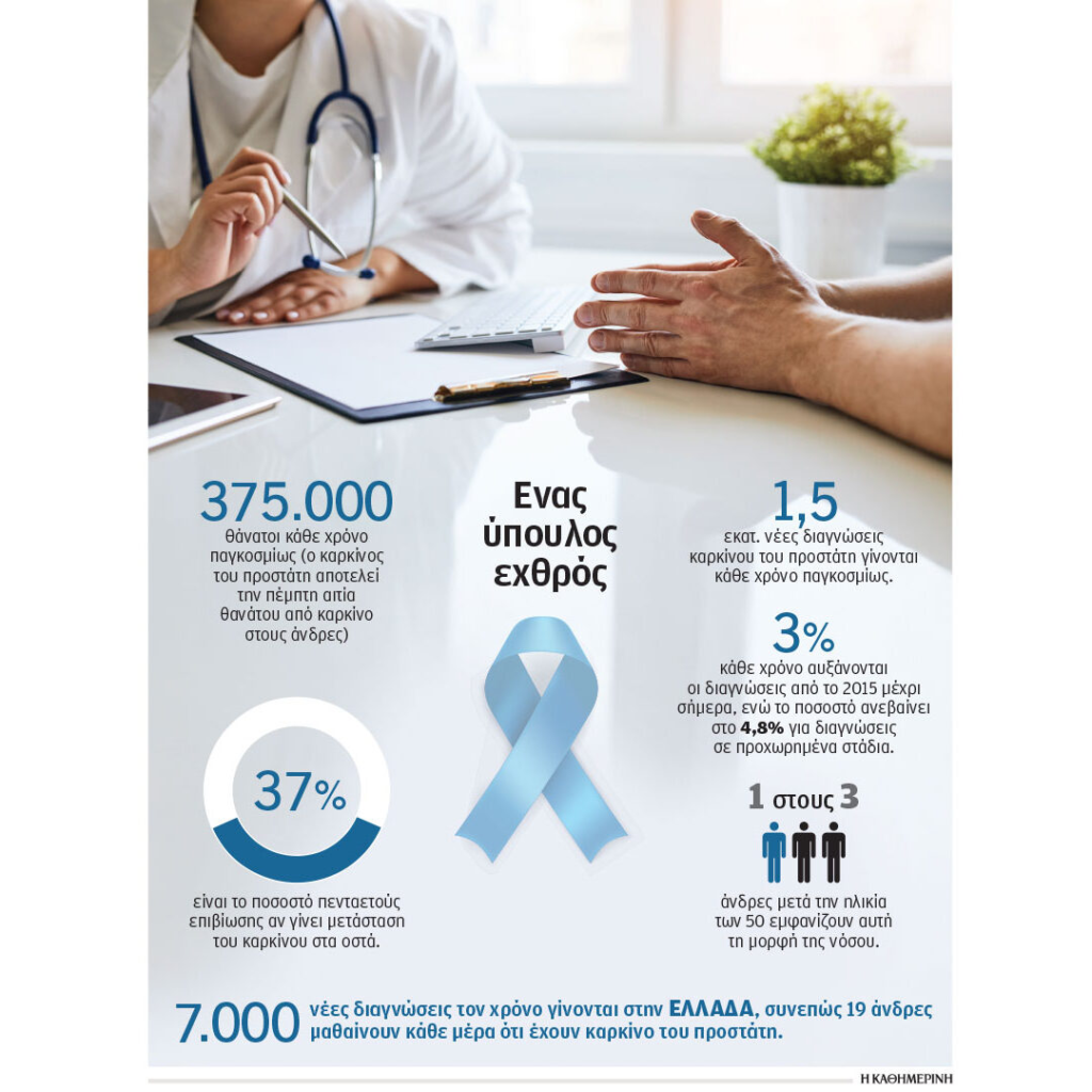 πάνια απασχολεί τα μέσα μαζικής ενημέρωσης ο καρκίνος του προστάτη· συνήθως αυτό συμβαίνει όταν δημοσιοποιείται ότι νοσούν γνωστοί εκπρόσωποι της πολιτικής, των επιχειρήσεων ή της σόουμπιζ, όπως ο τέως πρόεδρος των ΗΠΑ Τζο Μπάιντεν, ο θρύλος των επενδύσεων Γουόρεν Μπάφετ, οι ηθοποιοί Ράιαν Ο’ Νιλ, Ρόμπερτ ντε Νίρο και Μπεν Στίλερ. Το αποτέλεσμα είναι σημαντικές πλευρές του να μένουν αδιευκρίνιστες για την κοινή γνώμη. Πόσοι γνωρίζουν ότι διεθνώς πρόκειται για την πέμπτη αιτία θανάτου από καρκίνο στους άνδρες (375.000 ετησίως) και ότι σε αρκετές χώρες είναι ο δεύτερος πιο θανατηφόρος μετά τον καρκίνο του πνεύμονα; Κάθε χρόνο γίνονται περίπου 1,5 εκατ. νέες διαγνώσεις και υπολογίζεται ότι σχεδόν το 30% των ανδρών μετά την ηλικία των 50 ετών εμφανίζει αυτή τη μορφή της νόσου.